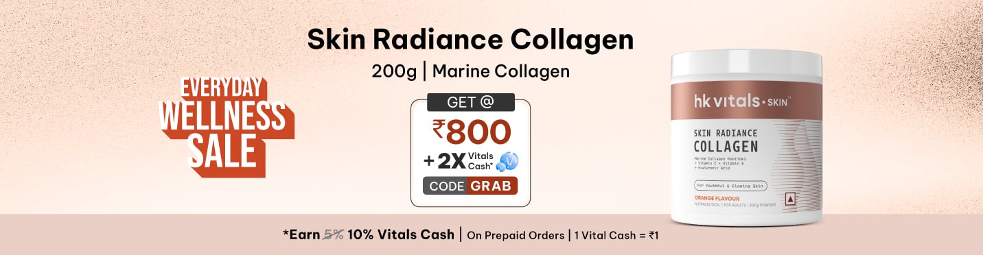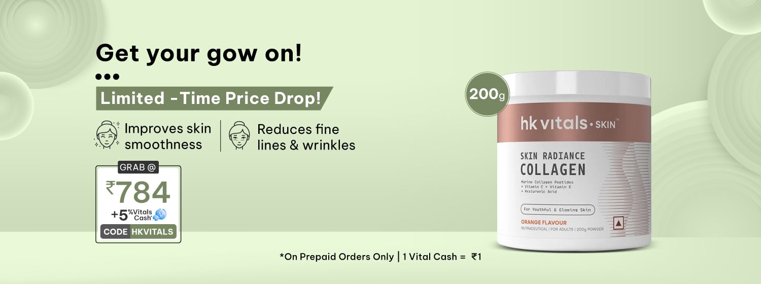 - HK Vitals Skin Radiance Collagen: Revitalize your skin, nails, and hair with this popular supplement, meticulously crafted to enhance skin elasticity, promote a natural glow, and support hair and nail health.